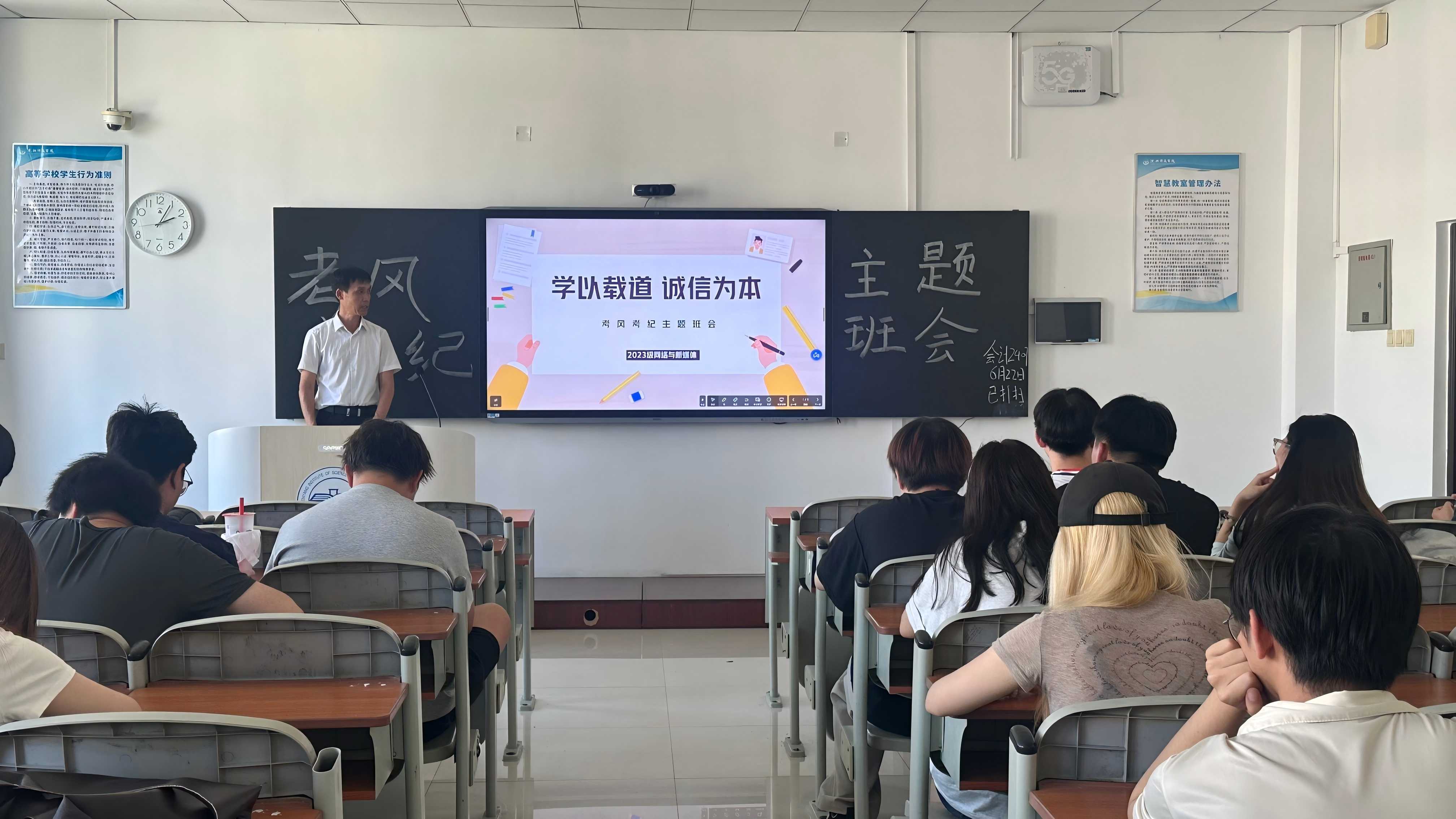 为进一步严肃考风考纪,强化诚信教育,营造公平公正的考试环境,tyc33455cc太阳成集团赵朋亮老师主持召开了以“树诚信考风,筑优良考纪”为主题的班会。会议通过政策解读、典型案例剖析及学生互动交流等形式,旨在增强学生诚信考试意识,引导学生树立正确的考试观念。
