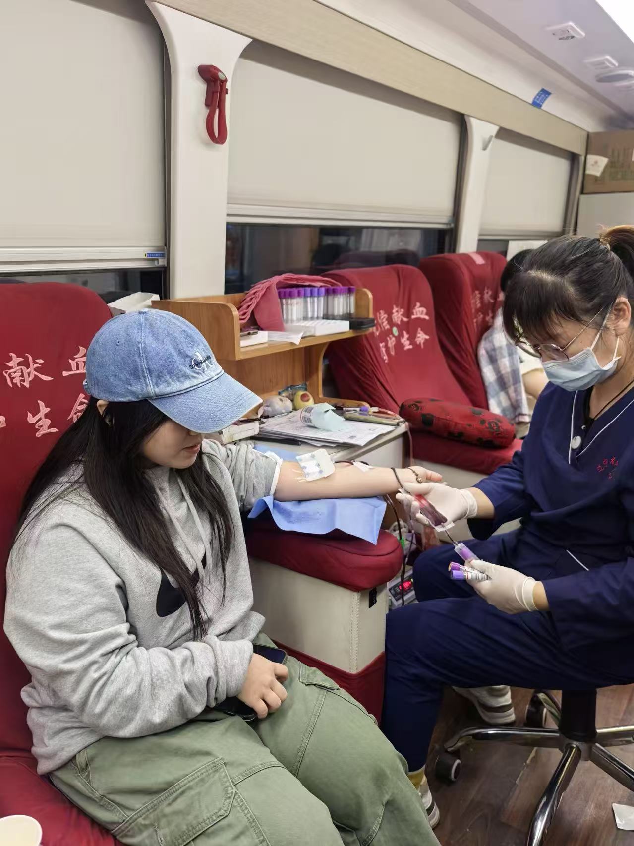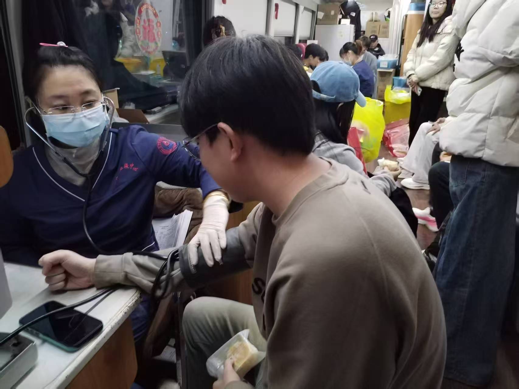 活动现场,陪伴的老师与学生以细致的人文关怀,配合医护人员引导流程,一句句温柔叮嘱、及时的贴心照护,悄然消除了现场的紧张氛围,让献血过程更显温情。