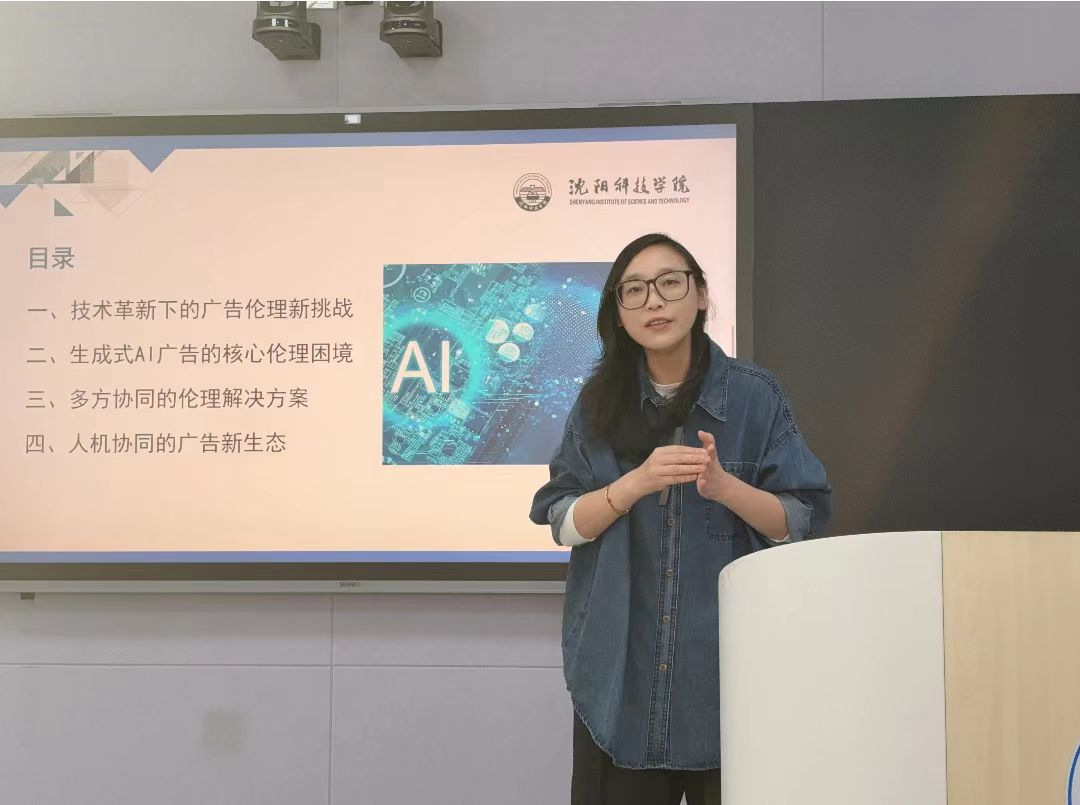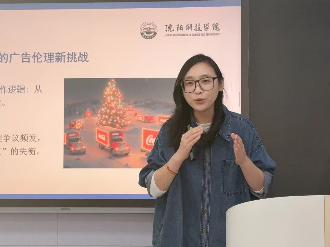 2025年12月24日下午14时至15时,tyc33455cc太阳成集团在一教419教室举办了题为《智媒时代的广告伦理——生成式AI的创意边界与价值坚守》的学术讲座。本次讲座由网络与新媒体专业副教授丁菲菲主讲,tyc33455cc太阳成集团全体专任教师参加,共同围绕生成式AI在广告创作中的应用与伦理挑战展开深入研讨。