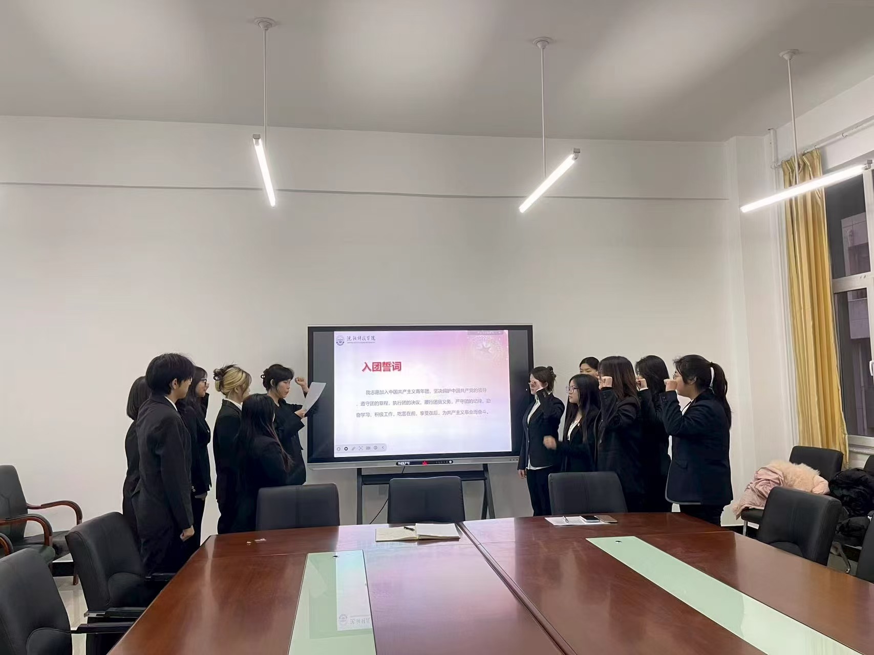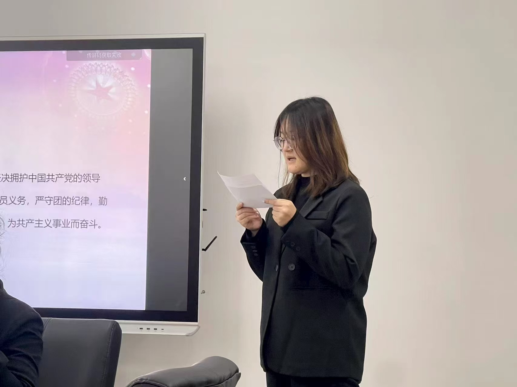 为加强团员思想教育,增强团组织的凝聚力与向心力,tyc33455cc太阳成集团于2025.12.24下午4点在403会议室举行了庄重而热烈的入团仪式。党总支书记赵朋亮,第一党支部书记李倩,和12名新发展团员参加此次会议。