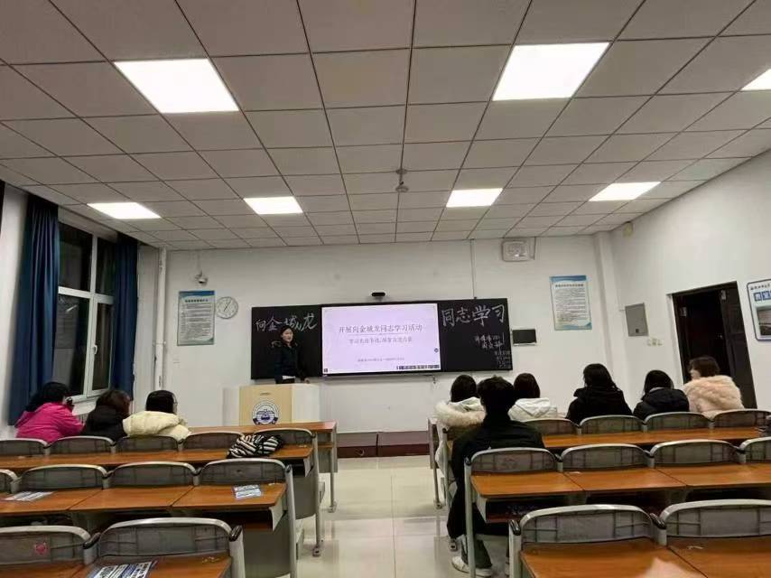 活动伊始,各团支部通过视频展播、事迹宣讲等形式,全面回顾了金城龙同志的短暂而光辉的一生。作为辽宁抚顺籍青年,他扎根雷锋精神发源地,用26载春秋践行初心:冰窟救人的无畏壮举、13次无偿献血累计4000毫升的坚守、器官捐献登记的无私抉择,还有高中闯火场、大学8次街头救人的义举,以及考研期间帮同学寄行李、分享复习资料的暖心日常,无不彰显着他“无名无利无悔,有情有义有祖国”的人生信条。