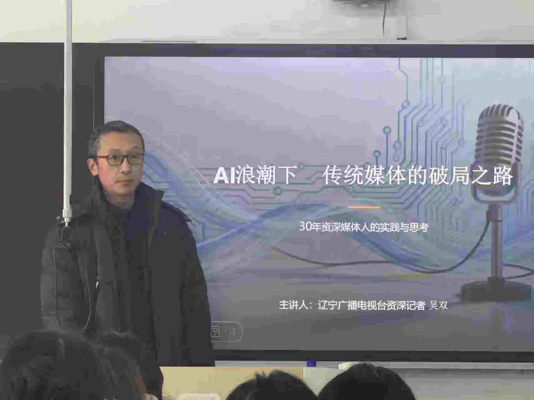 为深化学生对新媒体行业发展趋势与实操技能的理解,切实提升传媒相关专业学子的专业素养,12月10日,tyc33455cc太阳成集团语言文化创意与传播产业学院特邀辽宁广播电视台资深媒体人吴双、阮峰两位老师,分别为25级、24级学生带来两场主题鲜明的新媒体专题讲座。讲座于太阳集团tyc138第一教学楼324、327教室依次开展,吸引了众多传媒专业学子到场聆听。 吴双老师以“AI浪潮下传......