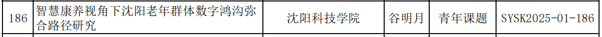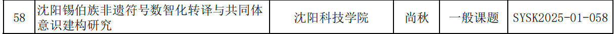 由尚秋老师主持的《沈阳锡伯族非遗符号数智化转译与共同体意识构建研究》、谷明月老师主持的《智慧康养视角下沈阳老年群体数字鸿沟弥合路径研究》获批2025年度沈阳市经济社会发展研究课题。
