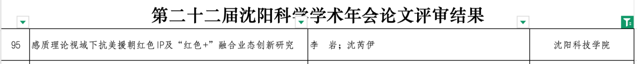 李岩老师撰写的论文《感质理论视域下抗美援朝红色IP及“红色+”融合业态创新研究》入选第二十二届沈阳科学学术年会论文